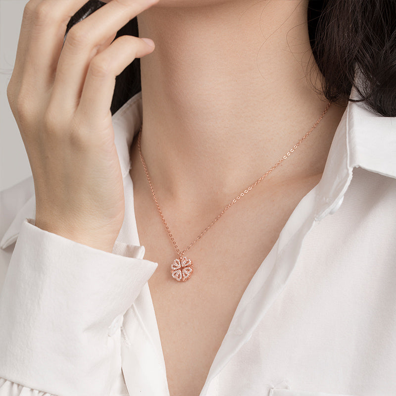 - π One necklace with two ways of wearing - This necklace has two designs in one necklace, open with 4 hearts, but closing is a four-leaf clover, perfect pendant necklace for a lady who has difficulty choosing.