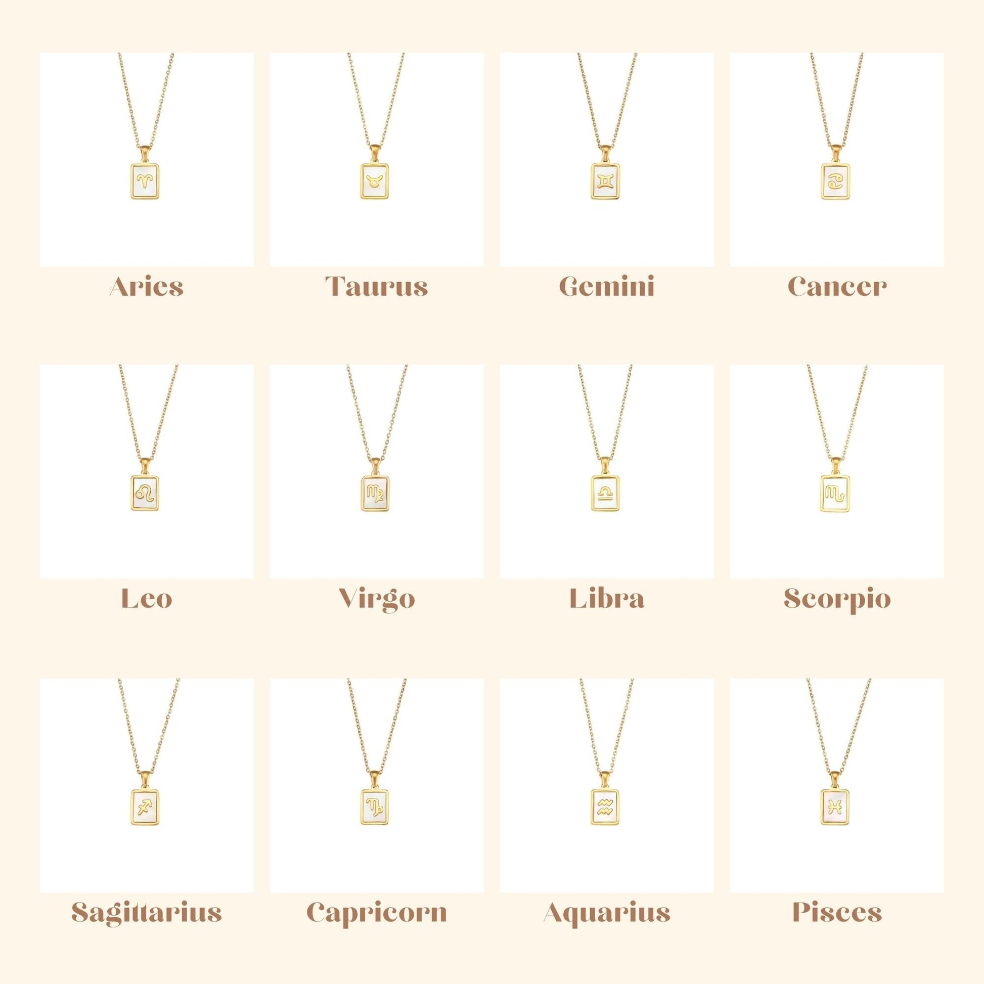 18K Gold Zodiac Necklace, Square Natural Shell Pendant Necklace, Gold Mother Pearl Horoscope Signs Tarot Necklace, Personalized Gift For Her