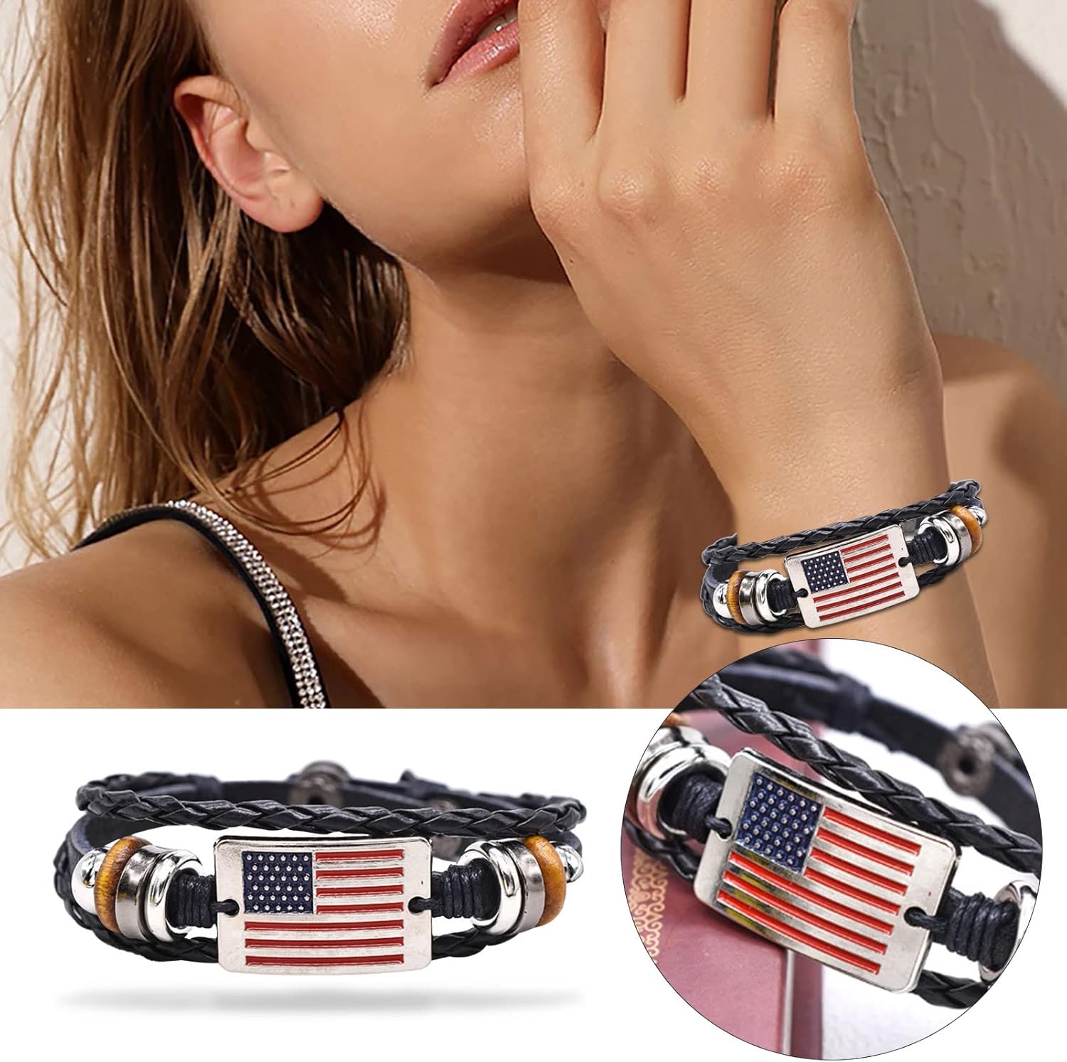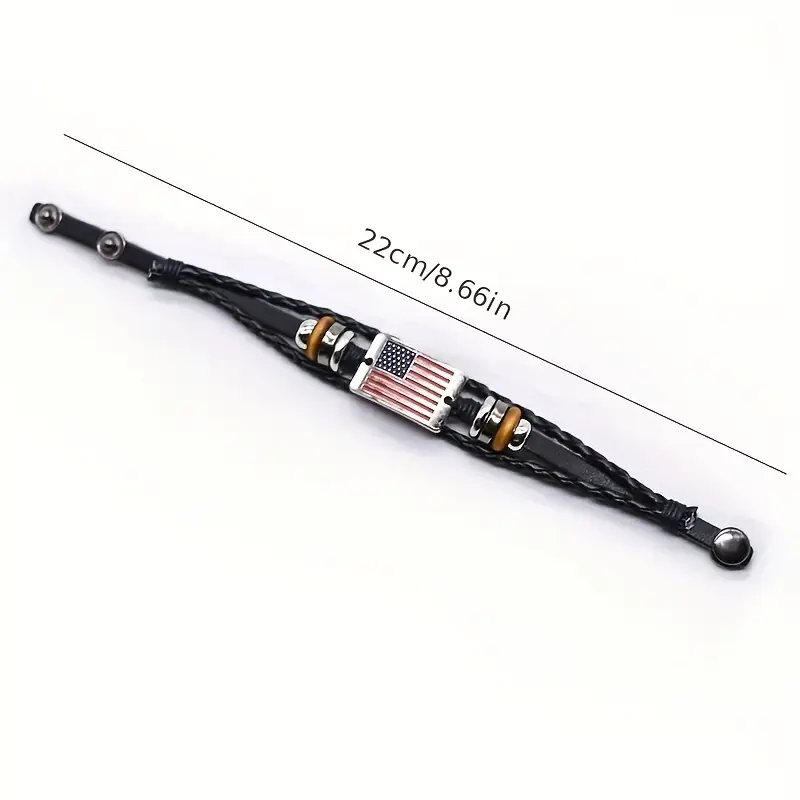 - 1*Adjustable American Flag Leather Cuff Bracelet