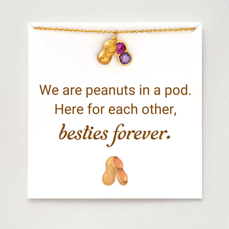 This peanut bracelet is the perfect gift for your nutty friend! It features 2-3 customizable birthstones to represent you and your friend. Show them how well you go together with this playful and unique bracelet.