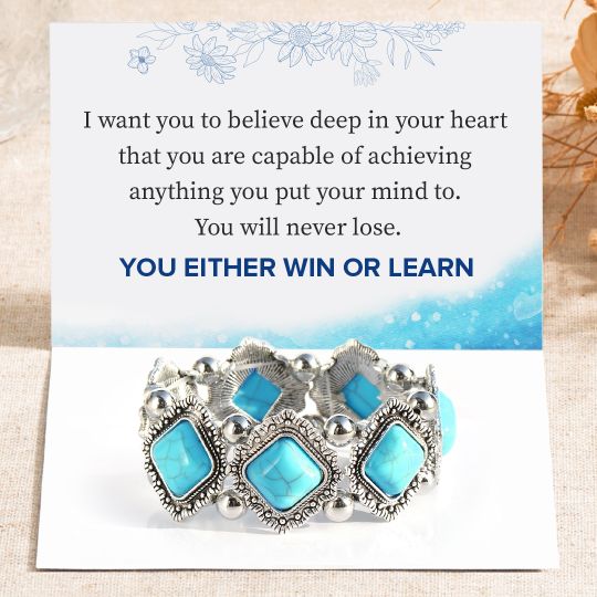Turquoise, renowned for its vibrant hue, is a stone steeped in symbolism. It has long been associated with victory, success, and positive energy. The calming shades of turquoise are believed to promote inner harmony, making it the perfect companion on your journey towards growth. Wear this bracelet as a constant reminder that every experience, whether a triumph or a lesson, contributes to your journey toward success.