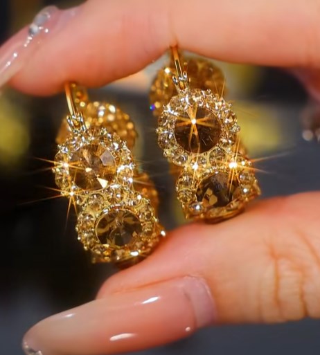 Noble, exquisite, and graceful, these Maillard Style Golden Champagne Crystal Earrings are made for outstanding women who appreciate luxury and taste. Perfect for adding a touch of glittering elegance to any outfit.