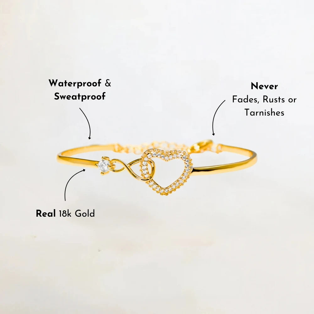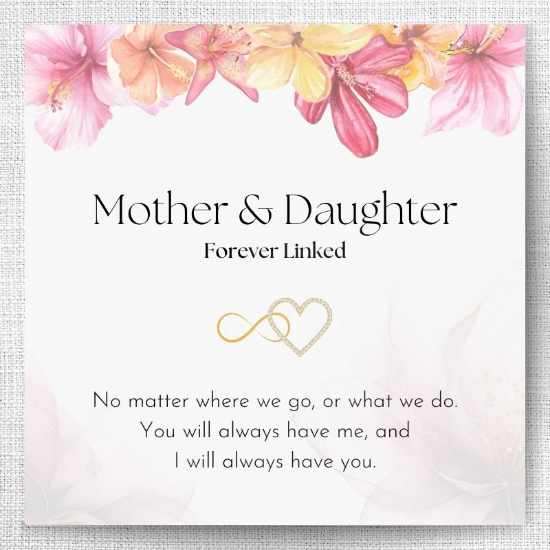 This elegant bracelet is more than just jewelry—it’s a daily reminder of the unbreakable bond between mother and daughter. With a heartfelt message card and a timeless heart & infinity design, it's the perfect gift to show her she’ll always have you, no matter where life takes you both.