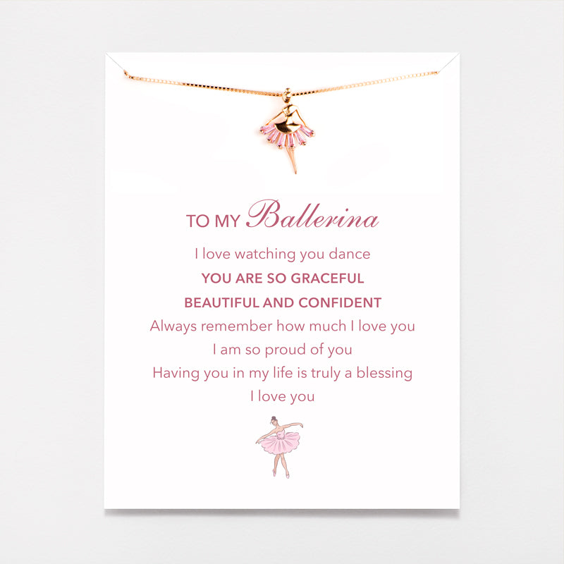 This unique, dainty Ballerina Necklace is a perfect gift and a compelling reminder for a beloved daughter that your love for them is endless.